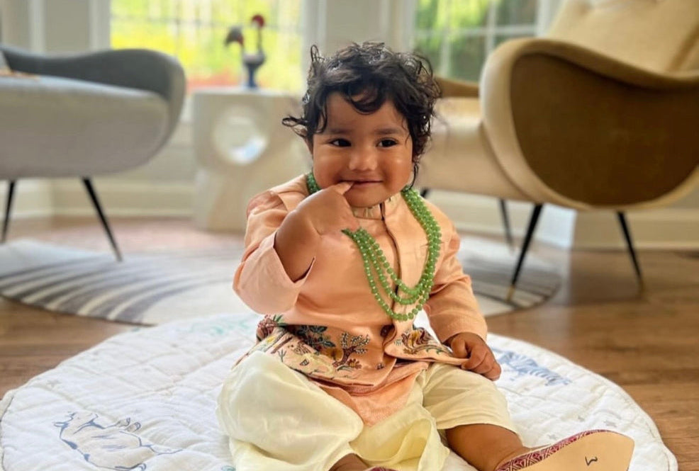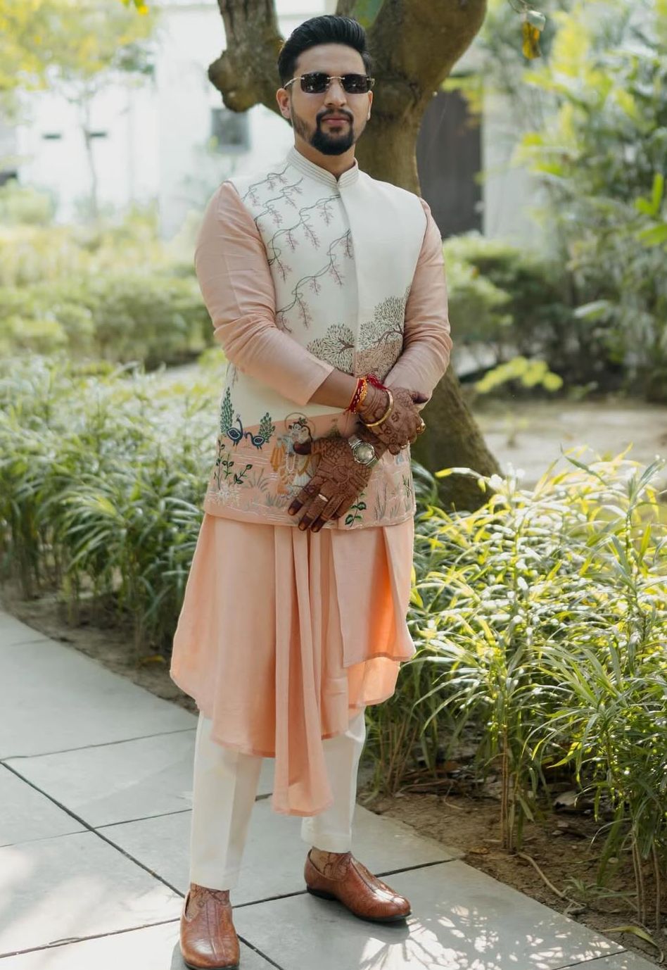 PEACH SILK NEHRU WITH A TRIPLE LAYERED KURTA